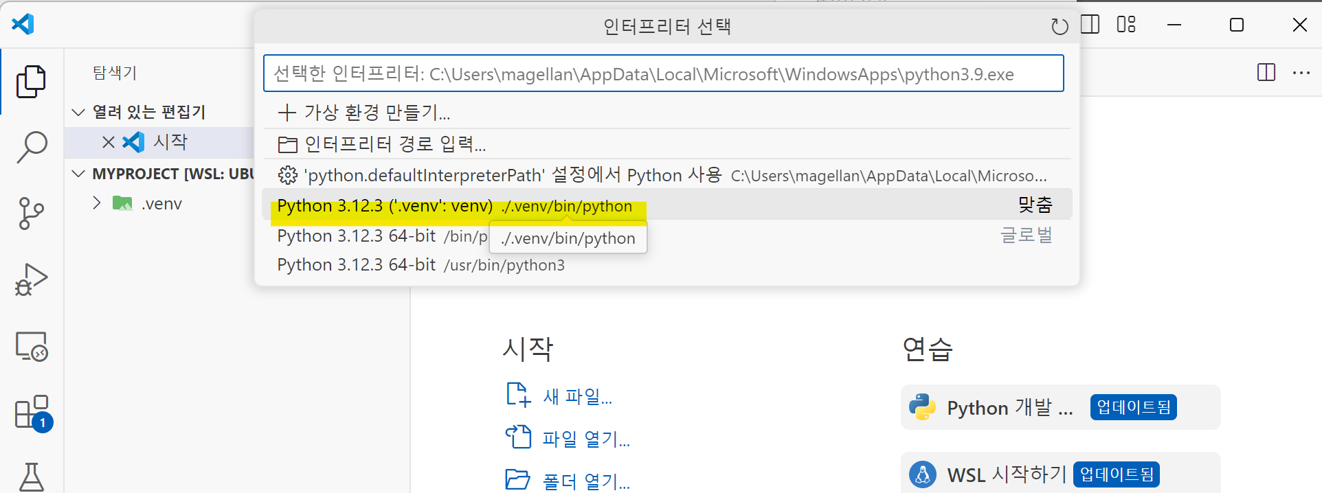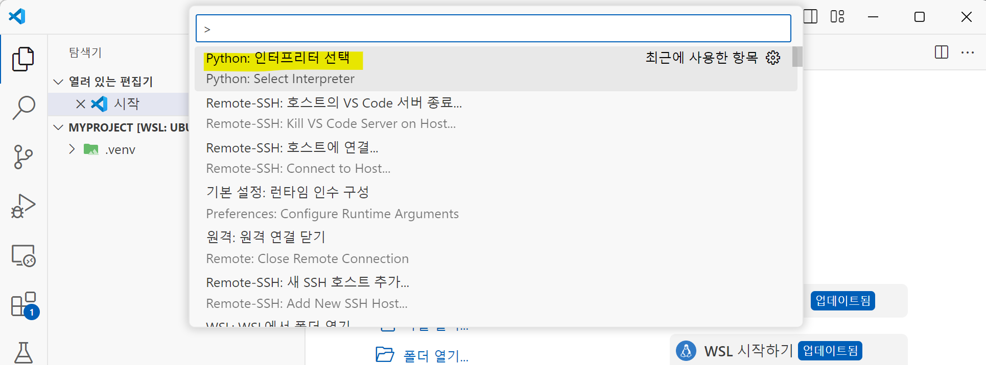 어떤 언어를 쓸 것인지 선택을 하면 의존성 패키지를 설치한다.