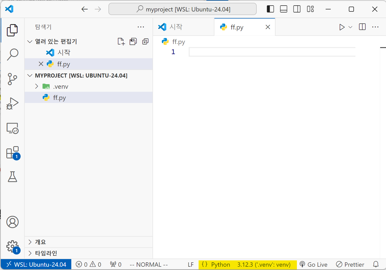 이 상태에서 멈춰 있으므로 Ctrl+C 로 중지 시킨 후 다시 실행해본다.