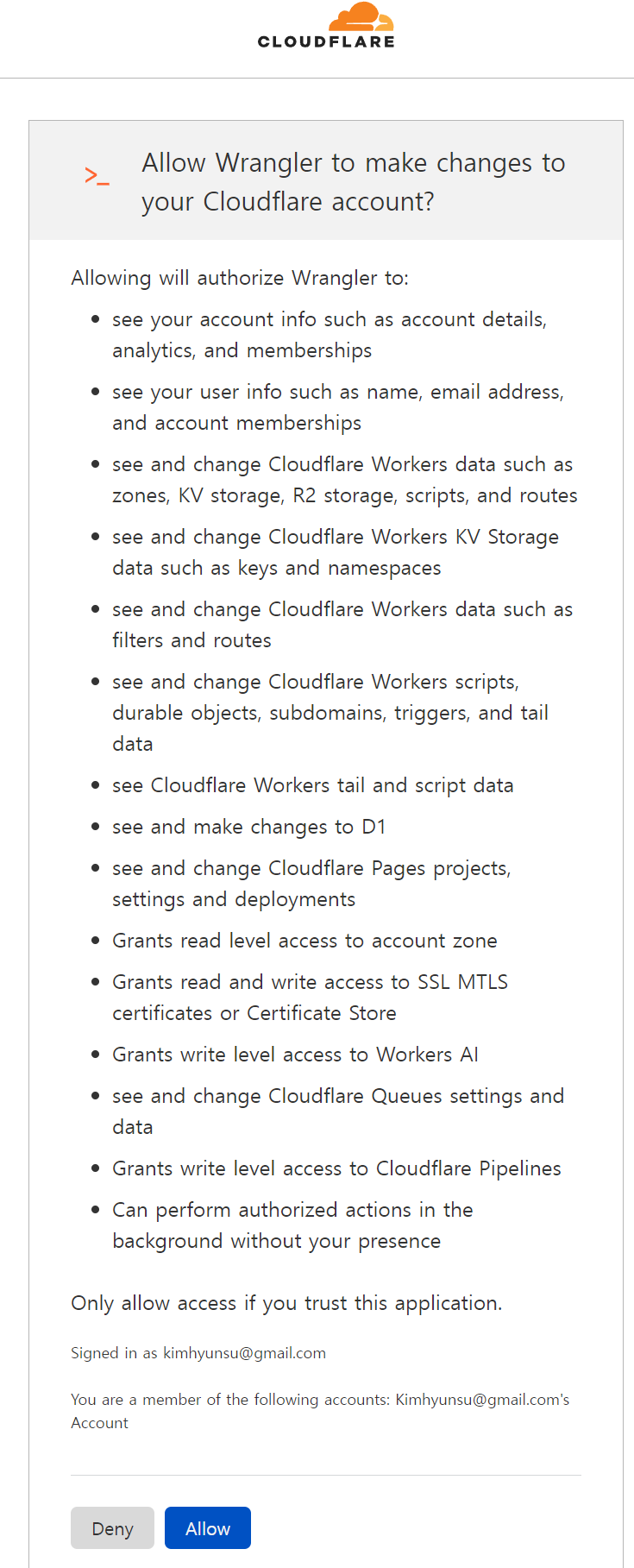$ npm install wrangler@latest # 최신버전으로 업데이트
